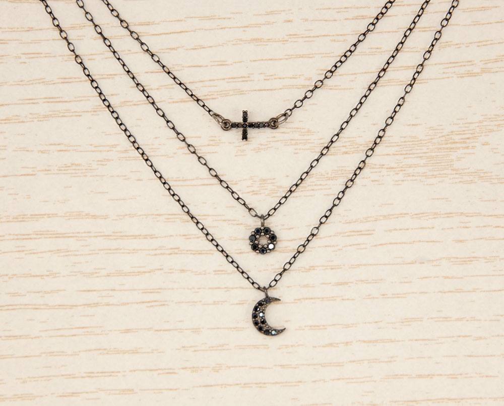 El collar Aitne es un collar triple con 3 cadenas de Plata de 1ª de primera Ley a diferentes alturas, ideal para cualquier escote.